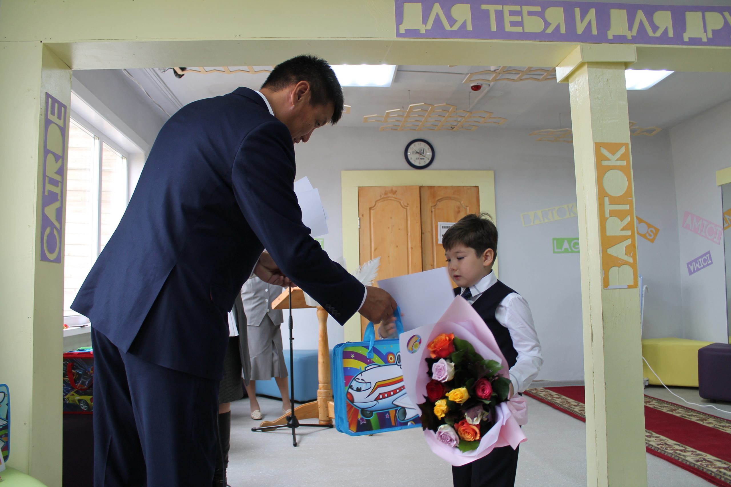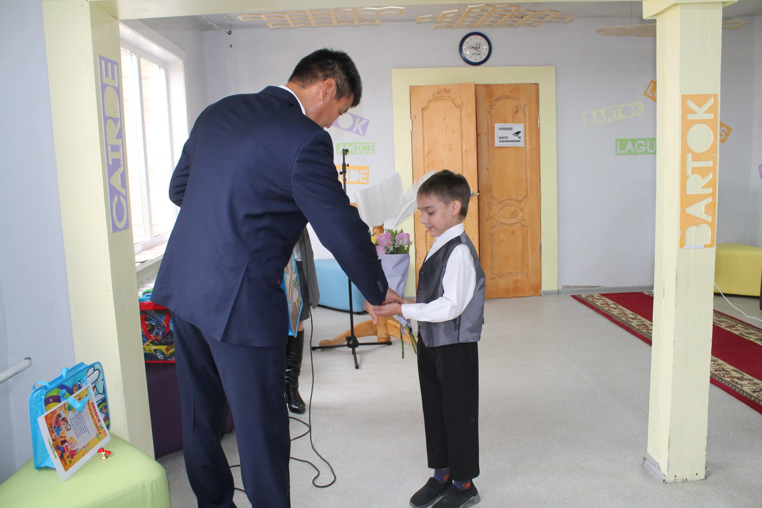 Поступающие в 1-е дополнительные классы, после приветственного слова директора, и видеопоздравления, получили памятные подарки.