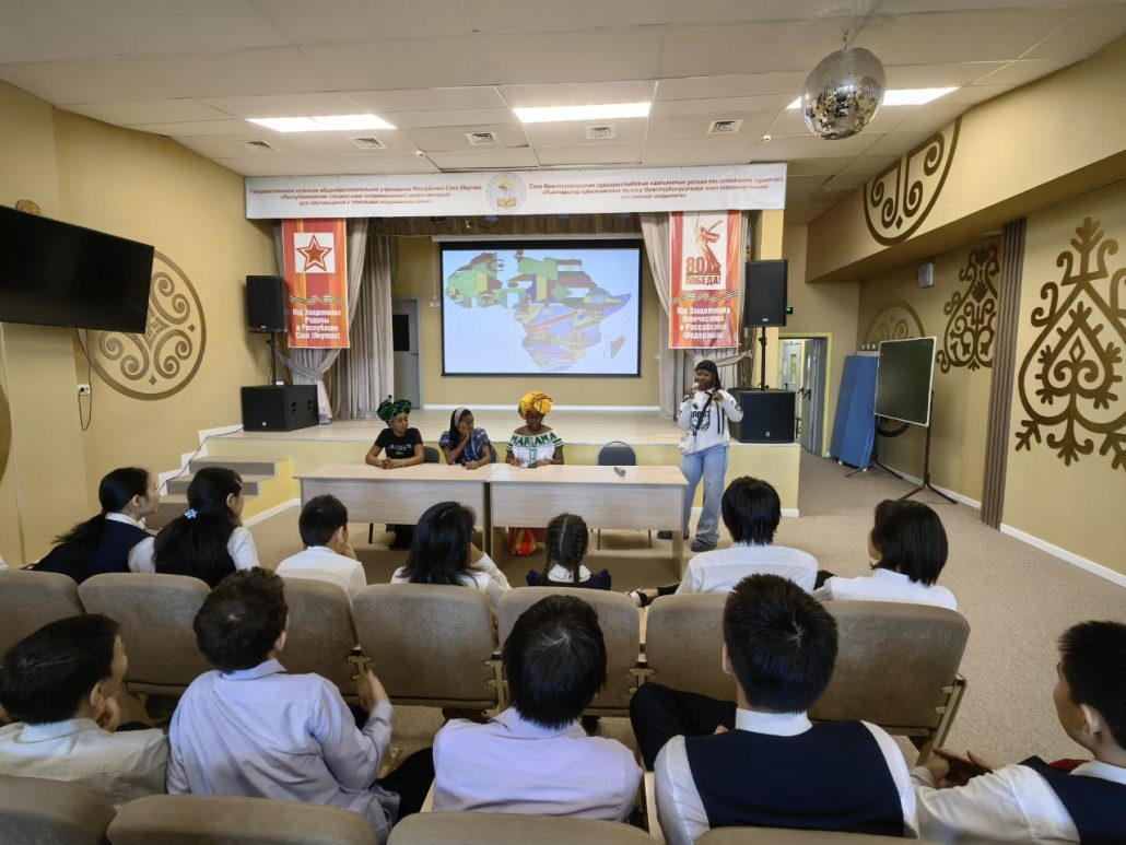 В рамках проекта воспитателей выходного дня «Хоровод единства» 31 января прошла интереснейшая встреча с гостями из Африки: Конго, Гвинея-Бисау, Мозамбик. Студентки СВФУ рассказали о своих странах, культуре, показали национальную одежду, спели песню и показали танец. Встреча получилась по-настоящему живой и познавательной. Ребята послушали рассказы о далеких африканских странах, о традициях и обычаях, которые так отличаются от наших. Увидели национальные костюмы, а зажигательные африканские ритмы никого не оставили равнодушным. Дети узнали много нового и интересного.