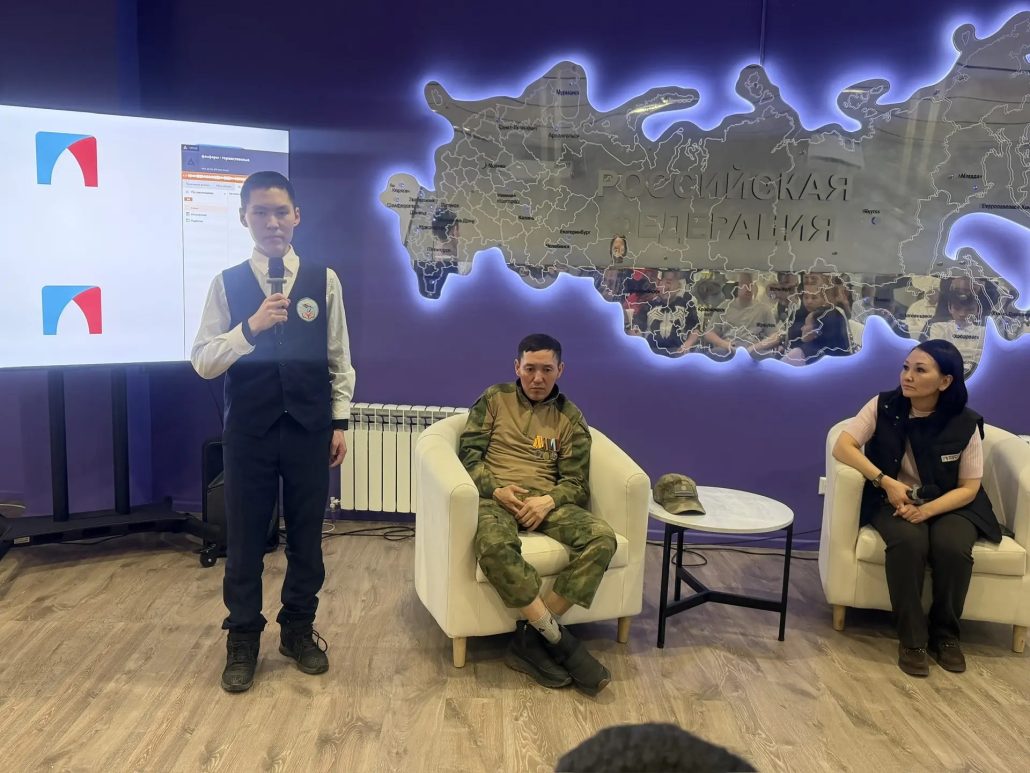 8 апреля 2026г в молодежном центре «Патриот» в рамках проекта «СВО — своим примером» прошла встреча с участником СВО Чолоевым Олегом Спиридоновичем. Участие приняли школы г.Якутска.. Наши ребята из школьного театра «Алые паруса» активно включились в диалог, получили памятные подарки, а главным украшением встречи стали стихи, написанные участниками СВО в исполнении наших учеников. Завершилась программа экскурсией по центру.